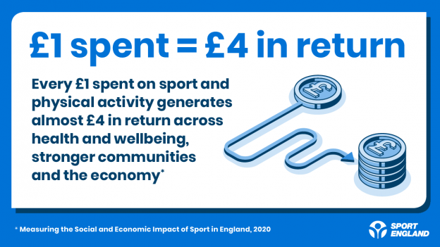 From Sport England and Sheffield Hallam University … for every £1 spent on community sport and physical activity, a return on investment (ROI) of £3.91 was created for individuals and society.
