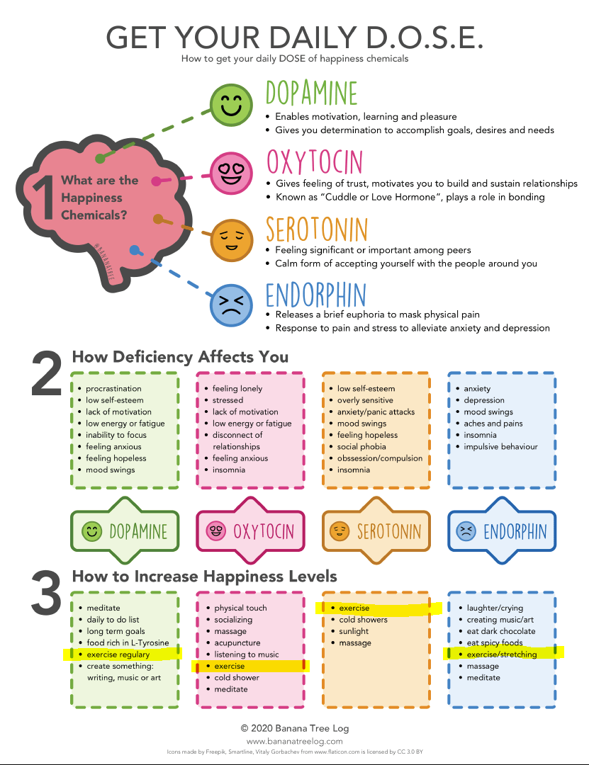 How to get your daily DOSE of happiness chemicals 🚶🏼♂️🤸🏾♀️🤼🌳 Posted bycaleleyThu, 5th August 2021Thu, 5th August 2021Posted inKnowledge Base https://www.mindmypeelings.com/blog/daily-dose-of-happiness-chemicals Related