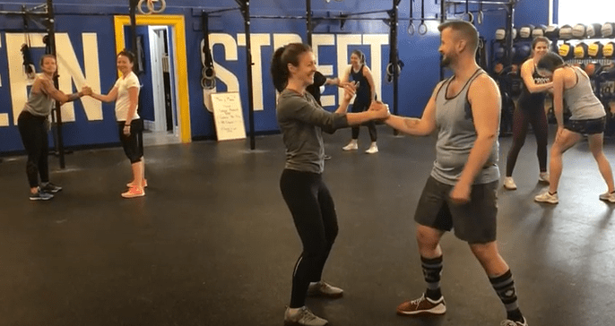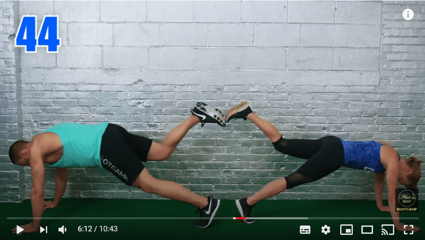 (Group size: pairs) https://youtu.be/3K6XGxO8jhw?t=355 pairs facing away from each other in push up or plank position, how many times can tap feet…in 1 min. Upgrade to also lifting opposite hand 🦶🏼🦶🏾