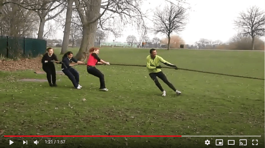 (Group size: 4+) https://youtu.be/BrN0LF5K1kc?t=64 Clients and some rope. Great fun! 🐘🐁